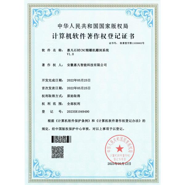Our company has our own independent CNC system, and is protected by the copyright of the National Copyright Administration of the People's Republic of China